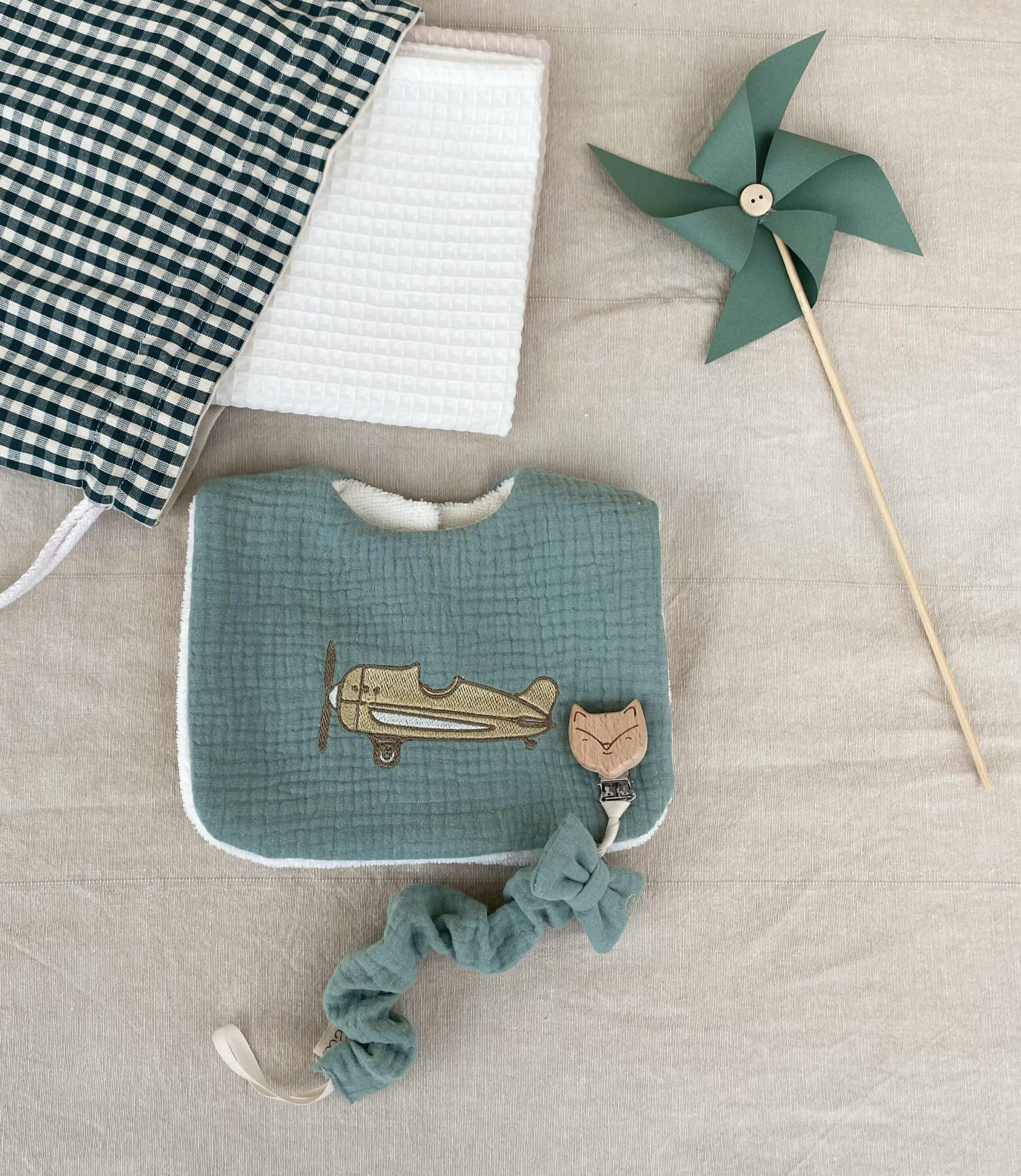 Il bavaglino può essere personalizzato con il nome o l’iniziale del bambino o con un ricamo speciale a scelta, per renderlo ancora più unico e memorabile. È un’ottima idea regalo che unisce praticità ed eleganza.